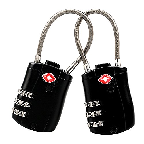 LUCKSTAR Combination Lock - 4 Digit Travel Padlocks TSA Approved (Steel Wire + Alloy) Password Lock for Luggage / Suitcase / Baggage Toolbox / Fence / Hasp Cabinet / Storage (Set of 2 (Black))