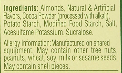 -. Feature : Food_Type - Nuts / Flavor - Dark Chocolate Cocoa Roast Almonds / Capacity_Weight - 63/100 oz / Packing_Type - Pack / Pre-consumer_Recycled_Content_Percent - 0%