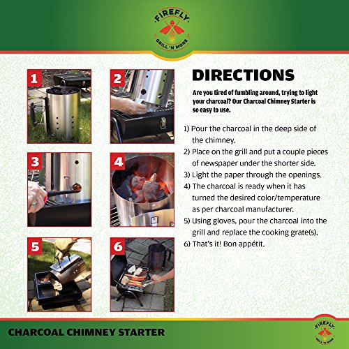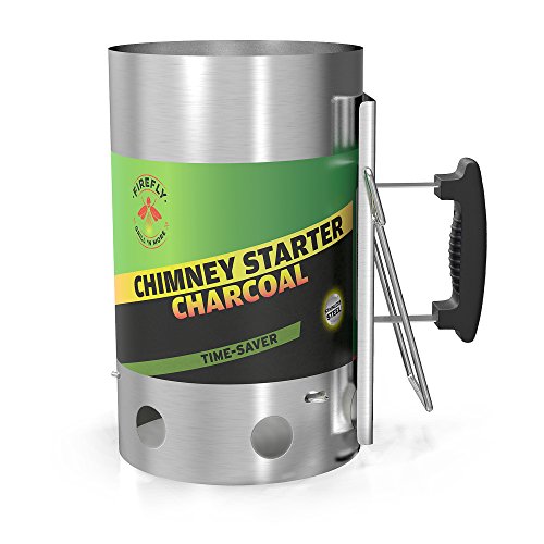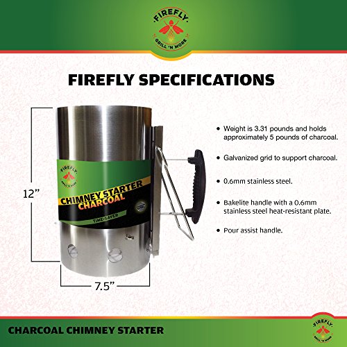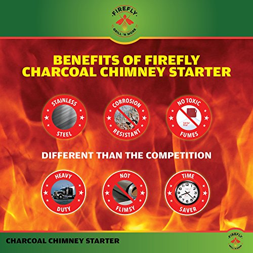 Charcoal Chimney Starter, Charcoal Cooker, Stainless Steel Charcoal Chimney Starter By Firefly Grill ‘N More - No Lighter Fluid, 5 LB. Charcoal Capacity, Heat Resistant Handle