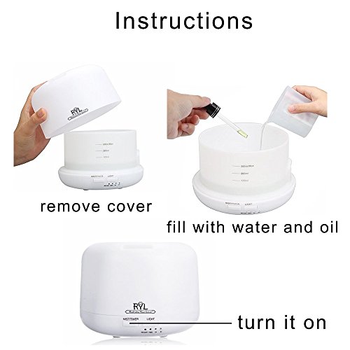 Radiate Your Love, Aromatherapy Essential Oil Diffuser Humidifier, 500ml -- Features 4 Timers, Color Changing Lamps and Auto Shut-off