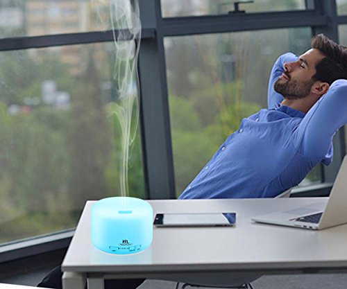 LARGE HUMIDIFIER: 500ml water capacity refreshes large rooms for up to 10 hours. Ultrasonic vibrations convert water and essential oils into fine mist.