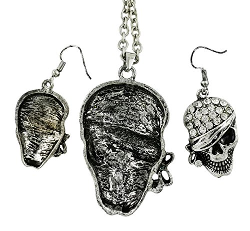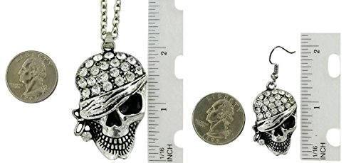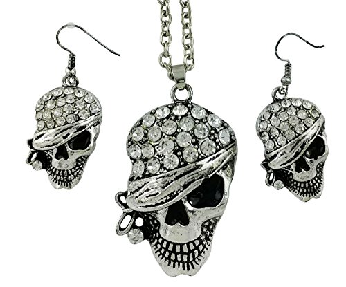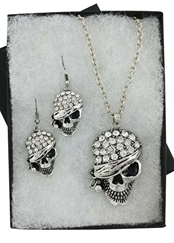 -. Binding : Jewelry -. Brand : Fashion Jewelry -. Color : silver -. Department : womens -. EAN : 0742230432830 -. Feature : - Treat yourself this Halloween with this exquisite jewelry set containing Rhinestone studded Skull head, lead free. / - Shiny & exquisite, the pirate Halloween earrings and necklace are silver plated with lots of rhinestones to complement the astounding looks. Keep the spirit of Halloween and gift something classy. The ideal Halloween gift since the jewelry comes ready for gifting in a nice black gift box. / - Dimensions: earing length is 1.5 inches (4.45cm) long by 0.75inch (1.95 cm) wide. Necklace Length is 26 inches (66 cm) and the pendent size is 2.25 Inches (5.72 cm) long and 1.25 inches (3.18 cm) wide. The diameter of the rhinestones is 0.25 inches (0.06 cm) on the bonnet. / - Comfortable, the Halloween jewelry is easy to put on/off since the earrings feature fasteners that are French ear wires or fishhooks and the necklace closure is the safe lobster claw. / - This astounding Pirate Skull Head Halloween earrings and necklace set has a money back guarantee. -. Label : Fashion Jewelry -. Manufacturer : Fashion Jewelry -. ProductGroup : Jewelry -. ProductTypeName : FASHIONOTHER -. Publisher : Fashion Jewelry -. Studio : Fashion Jewelry -. Title : Pirate Skull Head Necklace & Earring Set with Rhinestones | Halloween Jewelry Fashion Drop Dangle Style -. UPC : 742230432830