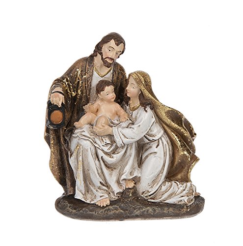 Holy Family 4.4 x 4.75 Inch Gold White Polystone Nativity Figurine