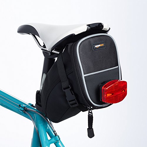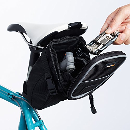 Large cycling wedge saddle bag easily connects under bike seat and to seat post