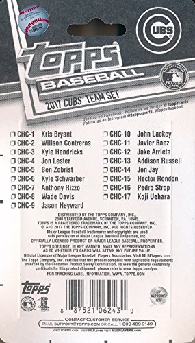 Chicago Cubs 2017 Topps Baseball EXCLUSIVE Special Limited Edition 17 Card Complete Team Set with Kris Bryant, Kyle Schwarber, & Many More! World Series Champions! Shipped in Bubble Mailer! WOWZZER!
