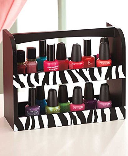 -. Title : Wooden Zebra P.R.Int Nail Polish Cosmetic Accessory Fashionista Organizer Storage Dressing Room Decor