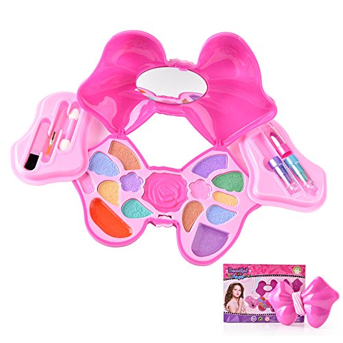 Bonniesun Kids makeup kit for girls, Princess Girl's Washable All-In-One Cosmetic and Real Makeup Palette Set with Mirror-SAFETY TESTED- NON TOXIC