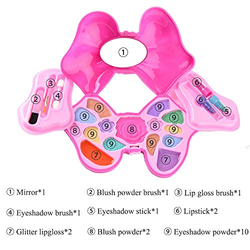 ❤ The makeup palette is safety tested and approved, non-toxic and soft to skin.Just use water with soap can remove, won't hurt your little princess' skin.