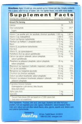 -. Feature : Alacer Corp Emergen-C Immune+ Blueberry-Acai 10 Pkts