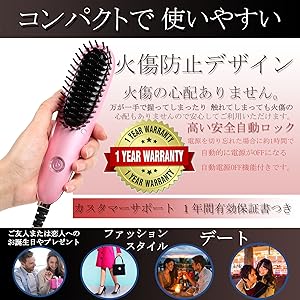 オートロック、日本語と英語説明証明書付、ミニヘアアイロンストレートブラシ