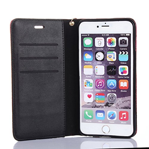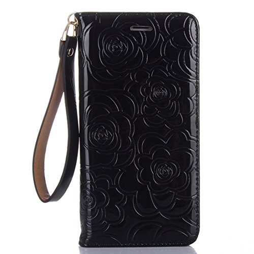 iPhone 6s Plus Wallet Case, FLYEE Bright Premium Vintage Emboss Flower Flip Wallet Shell PU Leather Magnetic Cover Skin with Detachable Wrist Strap Case for iPhone 6 Plus 5.5" Black