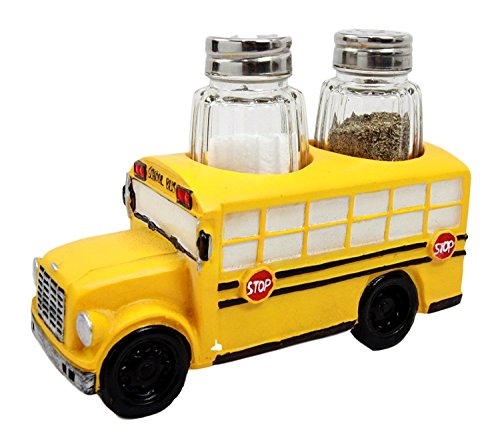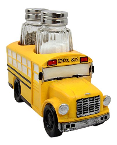 This school bus design salt pepper shakers holder figurine is an Atlantic Collectibles special release! Display this figurine at your table and at the same time use it as a salt and pepper container! This school bus spice shaker set will grace your dining area and it will make a great table centerpiece for any party!