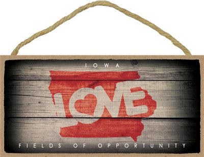 (SJT13548) Iowa - State Outline With "Love" And State Motto 5" x 10" Wood Plaque Sign