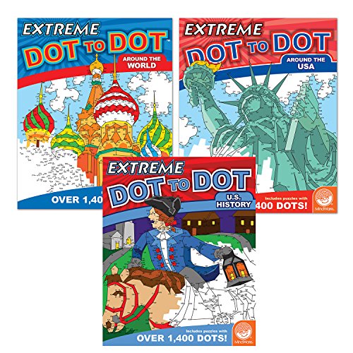 Created by MindWare! Exercise your left and right brain at the same time with these complex dot to dot puzzles. Intricate, challenging and wildly rewarding to finish, Extreme Dot to Dot Book Set puzzles range from 300 to over 1,400 dots. Some puzzles even cover a two-page spread! Counting, mapping and concentration are just a few of the educational benefits of connecting the dots.