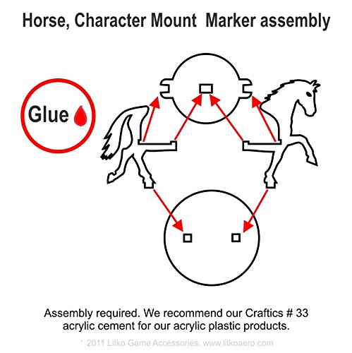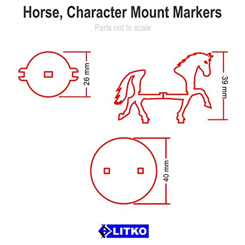 Studio : LITKO Game Accessories Publisher : LITKO Game Accessories Binding : Toy Product Description The character mount markers are perfect for fantasy games where you need to show which models are mounted. The markers are designs to allow you to use any standing miniature on a 25mm or 1 inch circle or square base. Simply place the figure onto the clear mount location of the marker and move them together. Now you don't have to go through the expense and time to create mounted versions of your foot models. *Designed for use with DD®role playing game by Wizards of the Coast LLC. LITKO Game accessories is not affiliated with Wizards of the Coast LLC, and they do not endorse this product. *Designed for use with the Pathfinder role playing game by Paizo Inc., LITKO Game Accessories is not affiliated with Paizo Inc., and they do not endorse this product. 0