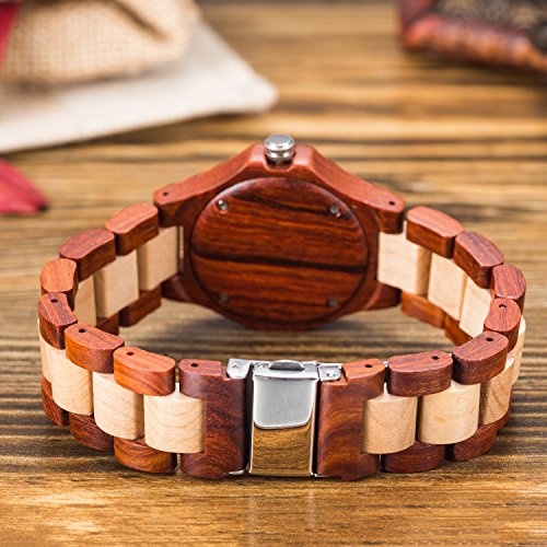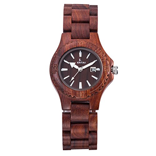 -. Feature : Healthy and Comfortable: Non-toxic Hypo-allergenic, Sentai women¡¯s wrist watch is made from high quality natural wood that is Special Designed for people with allergies and sensitive skin, so no metal ever touches the skin or People like to touch nature. Handmade, maybe the natural colors of them are slightly different from each other and color difference. / Unique Vintage Style: This is the perfect watch for a vintage look. It gives you a cool casual and retro style look that goes well with any attire. With it, you are not only wearing a watch on your wrist, but also a feeling of contact with nature. It also weighs only 38 grams which greatly adds to the comfort aspect. / Adjustable Band & Folding Clasp: You can easy to resize the watchband to fit your wrist. Folding Clasp very convenient to take on and off, with pressing buckle, it can effectively prevent falling down accidentally. If you want to change the size of the band,you can use a tool to take off the button and resize it as you want. Try NOT to get wet or soak in the water in daily life. / Special Design: Compared to other wood watch,the watch with date display and Luminous pointer, you can read the time even in the dark. Features Japan quartz movement, that guarantees you very accurate timings, a date display is also included at the 3 o'clock position. Long lifetime, the lifetime of the battery can be up to 2 years. Concise design, very cool but also convenient and practical in your daily life. / Excellent Gift: Carefully prepared, packaged and delivered to you in watch box, Sentai handmade wooden Watch is a great gift choice to your loved ones for Christmas, birthday, anniversary, Father's Day, graduation or Valentine's Day.It can always attract the attention from your friends and get good compliments.