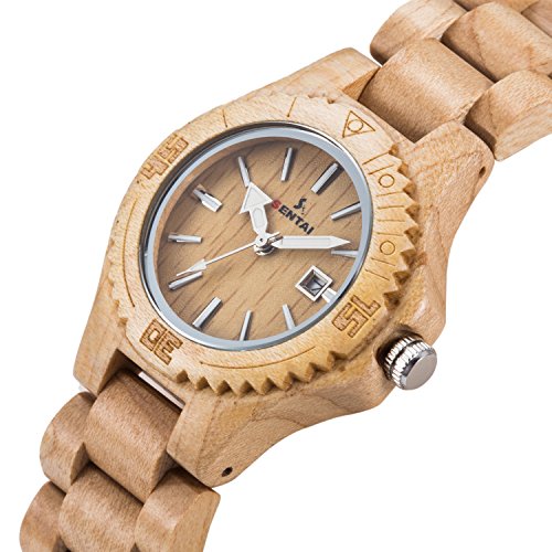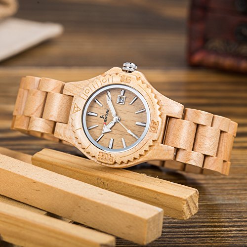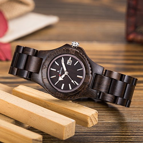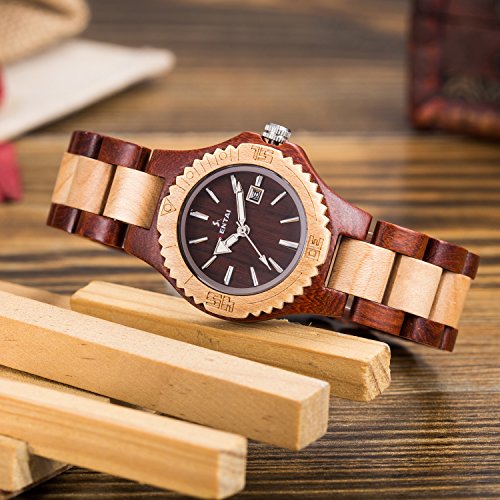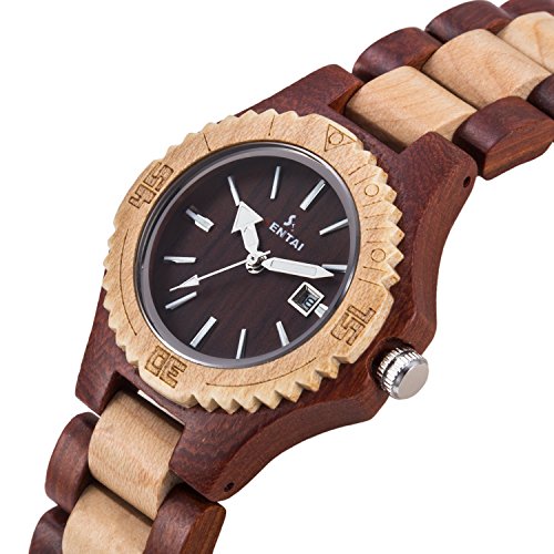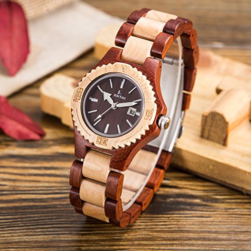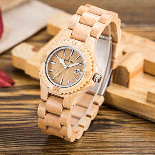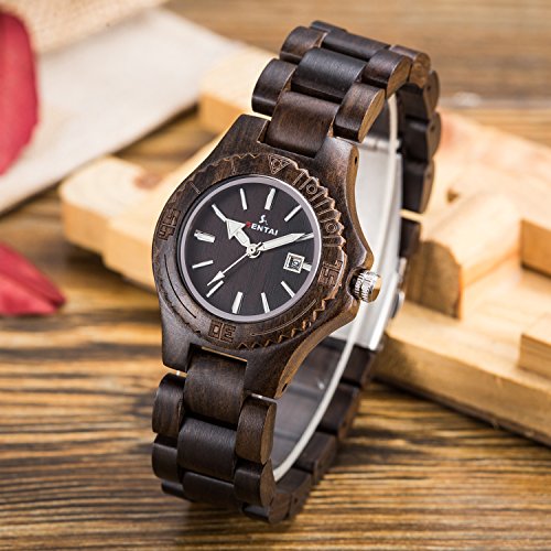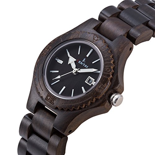 -. Title : Sentai Wood Watch, Womens Handmade Wrist Watch with Adjustable Band, Date Calendar, Luminous Pointer