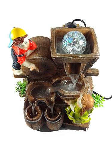 This durable poly-resin fountain is carved to look like real stone. The tabletop fountain adds the soothing sounds of splashing water to any home, patio or office setting. Clear your mind as these beautiful fountains slowly melt away tension. The calming sound of naturally flowing water provides the perfect backdrop for sleep, relaxation and concentration. The fountain features natural coloring and also includes LED lights that help to illuminate the fountain and makes the water glimmer and elegantly reflect off of surrounding surfaces. We offer quality home and garden products. Our main goal is to find products that will provide your home with a relaxing, yet beautiful element.Feature