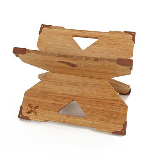 -. Feature : FLEXIBLE - Assembles in seconds and works where you do; simply rotate for 9" or 12" height / SIMPLE & UNINTRUSIVE - Folds flat and weighs less than (3) lbs. / INTENTIONALLY SUSTAINABLE - We choose to use premium, CARB II compliant, FSC-certified bamboo; strong, beautiful and durable / STURDY & STABLE - Equipped with custom corner pads that are reinforced with brass rivets (and glued) to grip and protect on nearly any surface--giving you the confidence to work your way, nearly anywhere. Designed so it will not rock back and forth. / INTENTIONALLY DESIGNED & MADE IN USA
