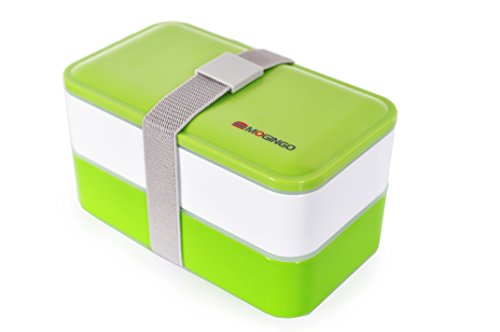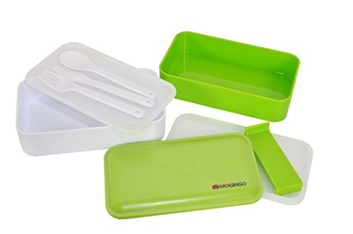 Stackable Spillproof Bento/Lunch Box Sleek and Sophisticated Design Container for Adults Including Fork Knife and Spoon with Movable Divider (Green)