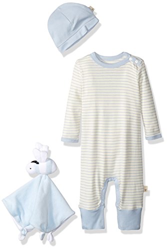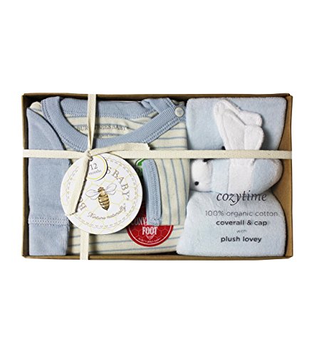 Our 100 percent organic cotton cozy time gift set is the perfect gift for mom. Bundled together with ribbon in a recycled craft box, this set includes a footless coverall with convertible foot feature, a snug cap and baby's favorite bee plush lovey. Give the gift that's perfect for playtime, naptime or anytimeFeature