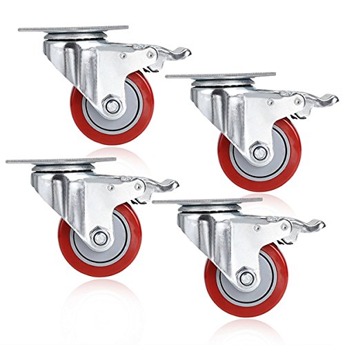 Hount 3'' PVC Heavy Duty Swivel Caster Wheels Lockable Ball Bearing 220 lbs each set of 4 Red
