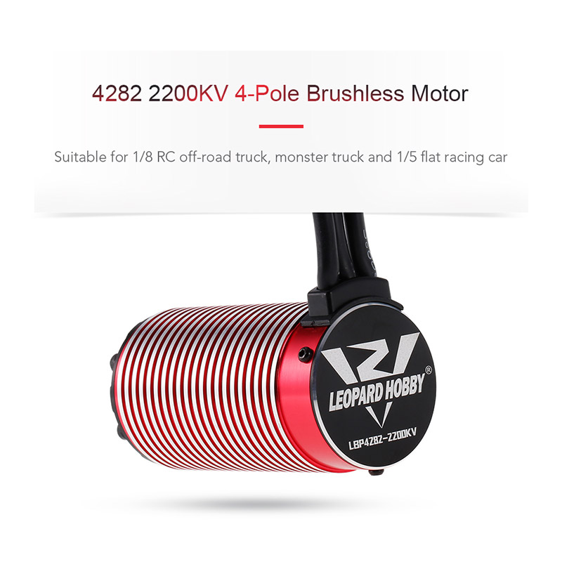 The Leopard 4282 is another unique offering from the guys at Leopard. It is built using the highest grade components for outstanding performance and longer life. The latest generation 4-pole rotors provide massive torque. All components are precision machined, balanced and hand-built to guarantee quality. 4282 motor can be used in 1/8 RC monster truck, off-road truck and 1/5 flat racing car.