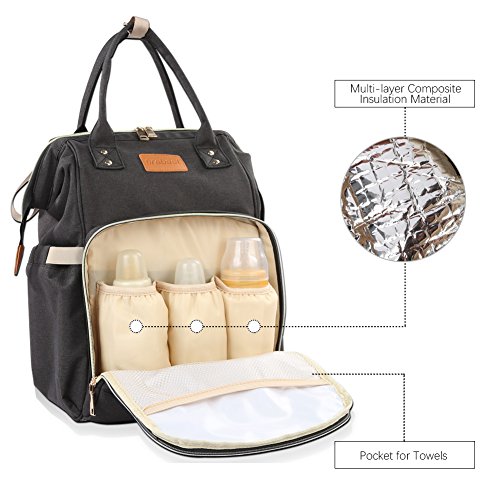 Choose our baby diaper bag It will bring you convenience Multiple separate storage pockets, include insulated pockets and wet clothes pocket,milk bottle, water bottle,clothes, diaper,smartphone etc can be put in.