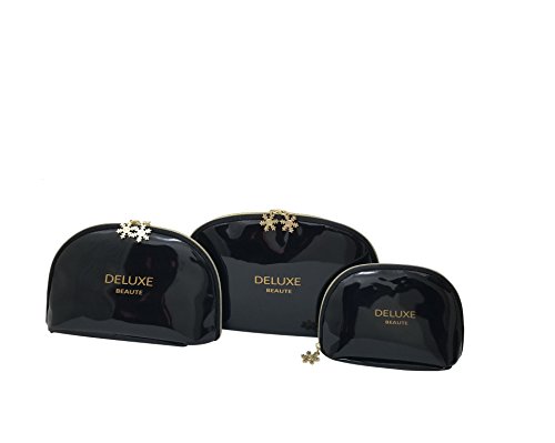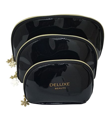 Deluxe Beaute Black Patent Leather Cosmetic Makeup Bag Set Of 3 S,M,L