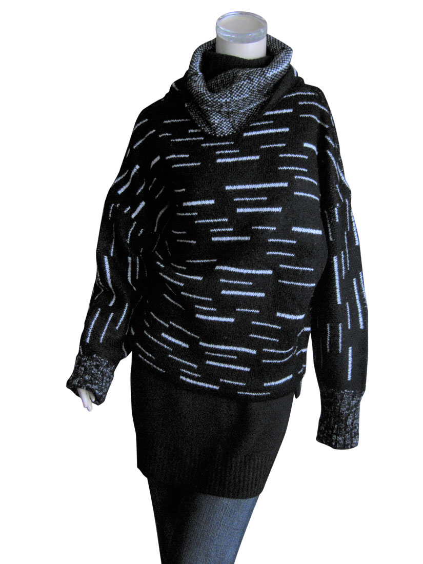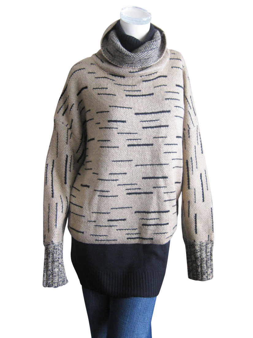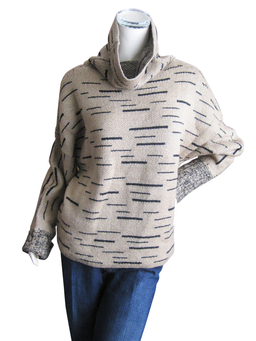 ボリュームのあるオフタートルのカジュアルフェミニンなニット。