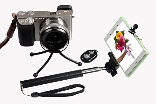 VALUE PACK Including Extremely Durable Stick With Adjustable Holder, Bonus Tripod, and Bluetooth Remote Control Taking 1 CR2032 Button-style Battery