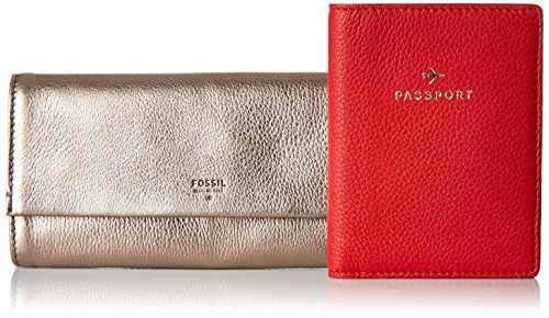 -. Binding : Apparel -. Brand : Fossil -. Color : Brass -. Department : womens -. Feature : Jewelry roll: bright oxidized brass -. Label : Fossil -. Manufacturer : Fossil -. Model : Jewelry Roll and Passport Case Travel -. ProductGroup : Apparel -. ProductTypeName : HANDBAG -. Publisher : Fossil -. Studio : Fossil -. Title : Fossil Jewelry Roll and Passport Case Travel Pouch Twice as nice for travel—our gift set comes with a classic jewely roll and passport case. In luxe leather, it’s the ultimate gift for the lady that has (almost) everything.