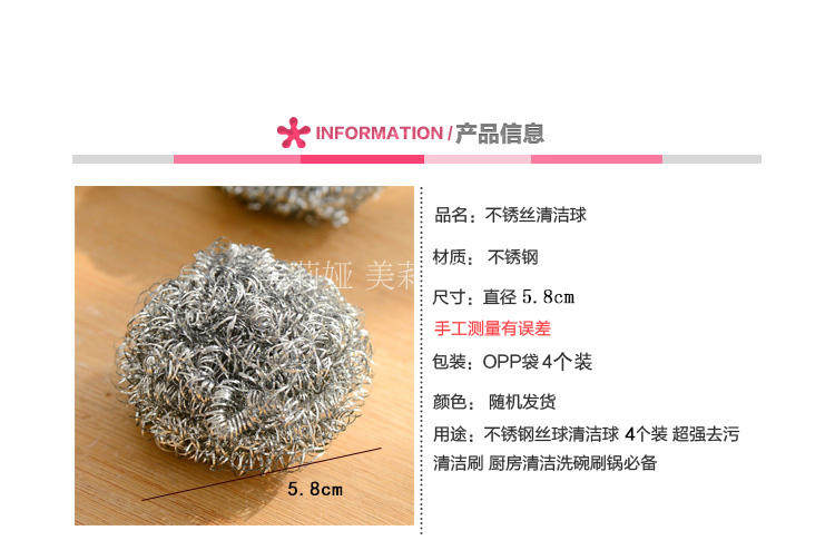 钢丝球 4个装清洁球铁丝球不锈钢锅刷清洁球海绵巾洗碗钢丝球锅刷
