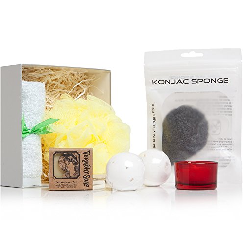 -. Feature : SOAK OUT THE STRESS. SOAK IN THE SERENITY. Tired? Stressed? Overworked? Aching Muscles? Indulge yourself in a hot steaming aromatherapy tub with an organic Bath Bomb while your Lavender scented candle flickers. Your senses start to relax. Your mind begins to ease. Your stress dissolves and you've now slipped into serenity. / YOUR BATH, BODY and BEAUTY Gift Box Set turns your own personal bath or shower into your P.R.Ivate Home Spa. Includes 1 Lavender and 1 Jasmine Bath Bomb made with real organic dried flower pieces, 1 Luxuriously Soft Bamboo Wash Cloth, 1 Lavender Scented Candle and Holder, 1 Loofah Puff, 2.6 oz Lemongrass Zen Bath Soap and 1 Natural Bamboo Charcoal Activated Konjac Sponge all nestled in a beautiful Silver Gift Box tied with a ribbon on top. / IT'S THE PERFECT GIFT! Whether it's for yourself or a gift for your Family, Friends or Co-Workers, this is a beautifully packaged affordable gift that they will love and will make you a Super Hero gifter. / PAMPER YOURSELF and revitalize your mind and spirit or give that gift to someone you care about this holiday season. Comes wrapped in a beautiful gift box ready to put under the tree. / TRUST. Our Customer Service is Unmatched. We Are Genuine, Honest People You Can Actually Email and Talk To. Try Us! Your Bath and Beauty Gift Box Is Backed By a 100% Satisfaction Guarantee.