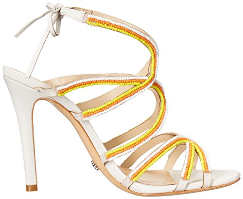 Product DescriptionLace-up dress sandal with 3 toned beaded straps and open toe and heel.0