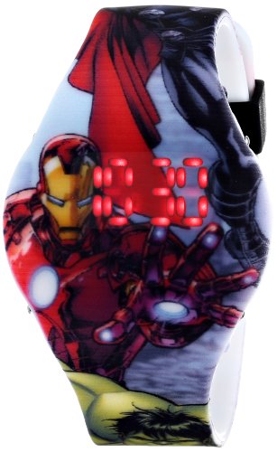 -. Feature : Avengers watch with LED digital display featuring printed strap with buckle closure / 43.0 millimeters plastic case with plastic dial window / Analog-quartz movement with digital display / Not water resistant