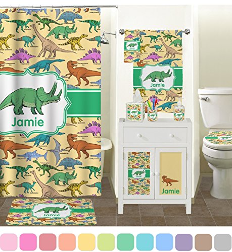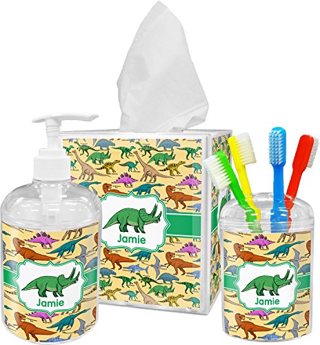 -. Brand : RNK Shops -. Color : Multi -. Feature : YOU WILL RECEIVE AN EMAIL WITH A LINK TO CUSTOMIZE YOUR ORDER WITHIN 1 BUSINESS DAY / Custom P.R.Inted with Your Design / 3 piece set / Inserts P.R.Inted on premium gloss media / Vibrant, colorful design -. Label : Mom Innovations -. Manufacturer : Mom Innovations -. MPN : mi-bath-acc-bundle+342002 -. PartNumber : mi-bath-acc-bundle+342002 -. ProductGroup : Home -. ProductTypeName : HOME_BED_AND_BATH -. Publisher : Mom Innovations -. Studio : Mom Innovations -. Title : Dinosaurs Bathroom Accessories Set (Personalized)