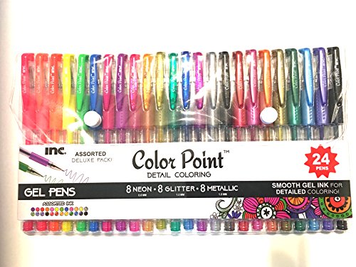 -. Title : Assorted Deluxe Color Point Detail Coloring Gel Pens -24 pen pack