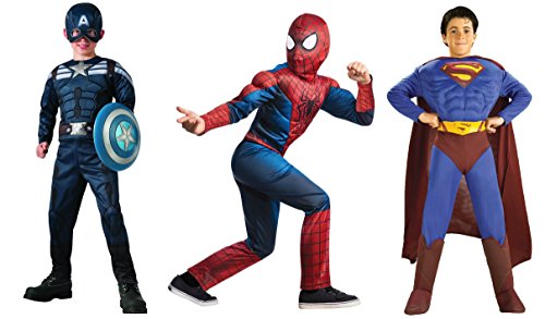 -. Title : Deluxe Super Hero Costume 3 Pack - Superman - Spiderman - Captain America