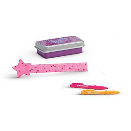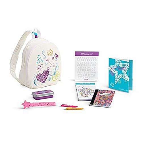 Girls can get their dolls ready for school in style! This set includes: A white doll-sized backpack with doodle graphics and a single crossover strap A pencil box with two pretend mechanical pencils A sketchpad A notebook A folder A pink plastic ruler Alphabet stickersFeature