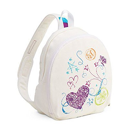 This set includes: A white doll-sized backpack with doodle graphics and a single crossover strap