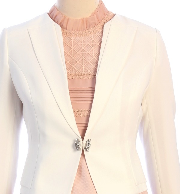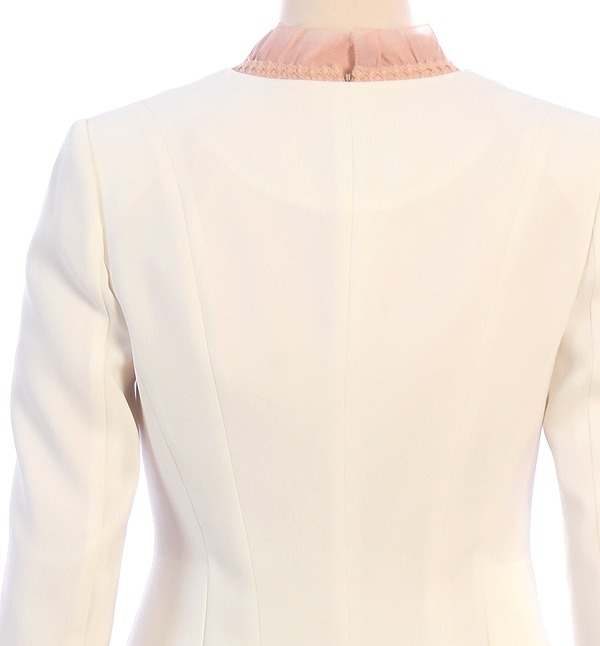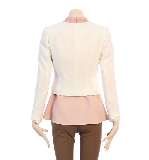SATIN, 군더더기없이 심플한 디자인으로 차분하여 포멀한 분위기를 연출하는 노카라 미니 자켓입니다
