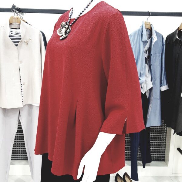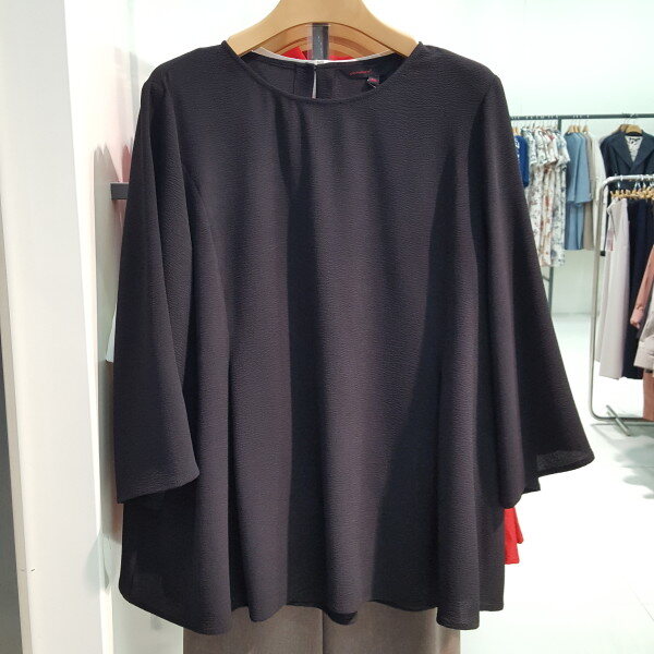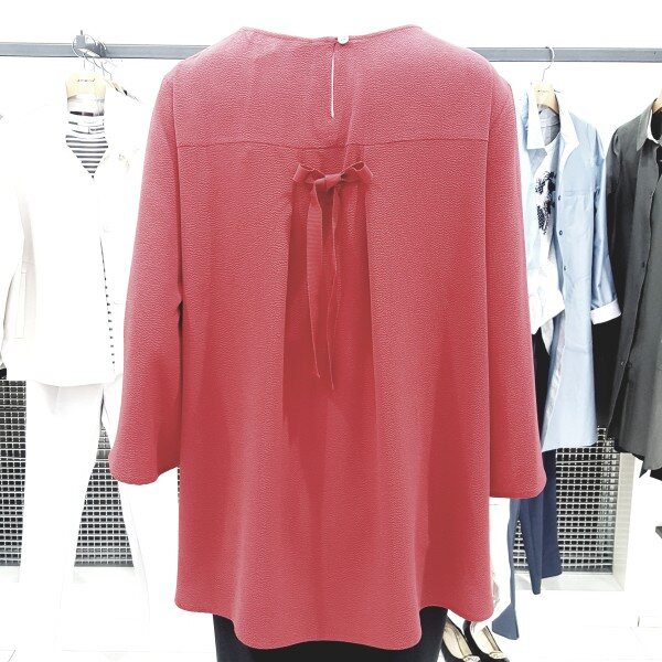 A라인 8부소매 기본 블라우스입니다.뒷 리본 포인트입니다.사이즈 넉넉합니다 마네킨 착용 66사이즈임