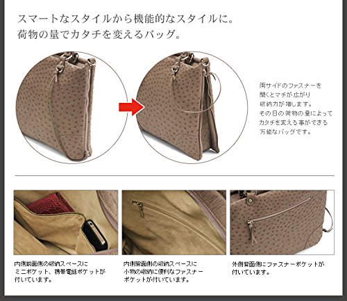 -. Feature : 丈夫で柔らかなオーストリッチをフルポイントで使用したトートバッグ クイルマークが可愛らしい印象のオーストリッチの革を表面と裏面に贅沢にフルポイントで使用しました。 両サイドのファスナーを開くとマチ幅が広がるので、収納量に合わせて調節できる万能なトートバッグです。 / (No. 3431 r ) / ■サイズ 横40cm/高さ33cm/マチ8~15cm/ハンドル立ち上がり13cm/ハンドル周囲34cm 【素材】表 オーストリッチ /内側 スエード調の生地/付属ショルダーベルト オーストリッチ・牛革 【重さ】840g 【収納】フリーポケット×1/携帯電話ポケット×1/ファスナー付きポケット×1 【開閉】天ファスナーで開閉 【仕様】内側は仕切りのない収納スペースになっています。 【備考】 ・両サイドのファスナーの開閉でマチ幅を調節できます。 ・表面と裏面にクイルマークが並んだフ