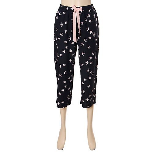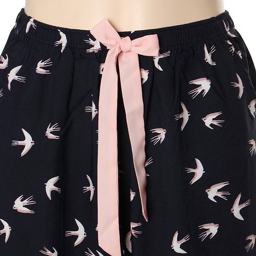 네이비컬러에 버드프린트와 리본 디테일이 여성스러움과 귀여움을 주며