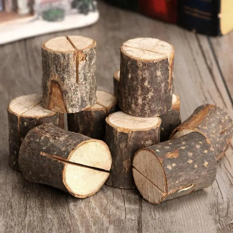 Hot Sale 10pcs/set Wooden Wedding Name Place Card Holders Natural Folder Rustic Photo Holder Table Number Holder A30
