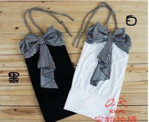 ミニワンピース マイクロミニ丈 リボン ホルターネック ベアトップ タイト フィット ボーダー フリル 夏