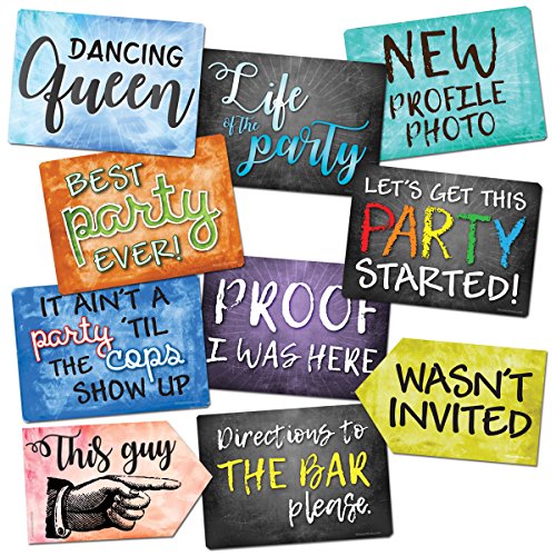 Plastic Photo Booth Prop Signs - Set of 10 Phrases - PARTY Mix