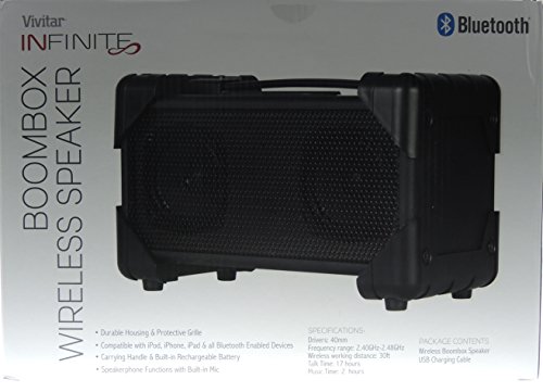 Vivitar V143BT-BLK Bluetooth Retro Boom Box Speaker, Black