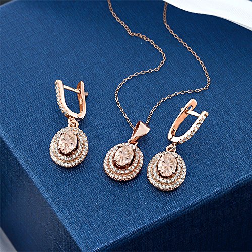 -. Title : 3.58 Ct Oval Peach Morganite 18K Rose Gold Plated Silver Pendant Earrings Set
